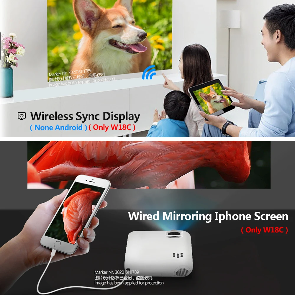 AUN MINI Projector W18C 2800 Lumens 854*480P Wireless Sync Display For Phone Portable Home Cinema f
